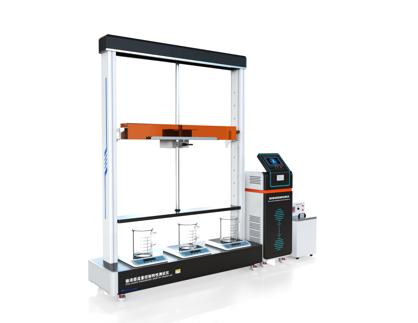 每個(gè)工位配備獨(dú)立的天平、容器量杯及魯爾接頭,可同時(shí)測試不同規(guī)格輸液器。
